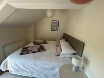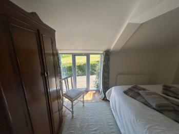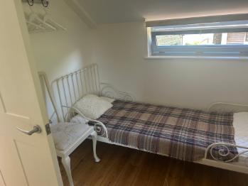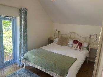 Bedroom 1 with double bed and pretty child's 2/6 single bed. Space for travel cots in both rooms.