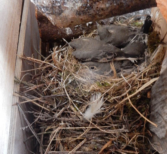 Wagtails in the log piles.
